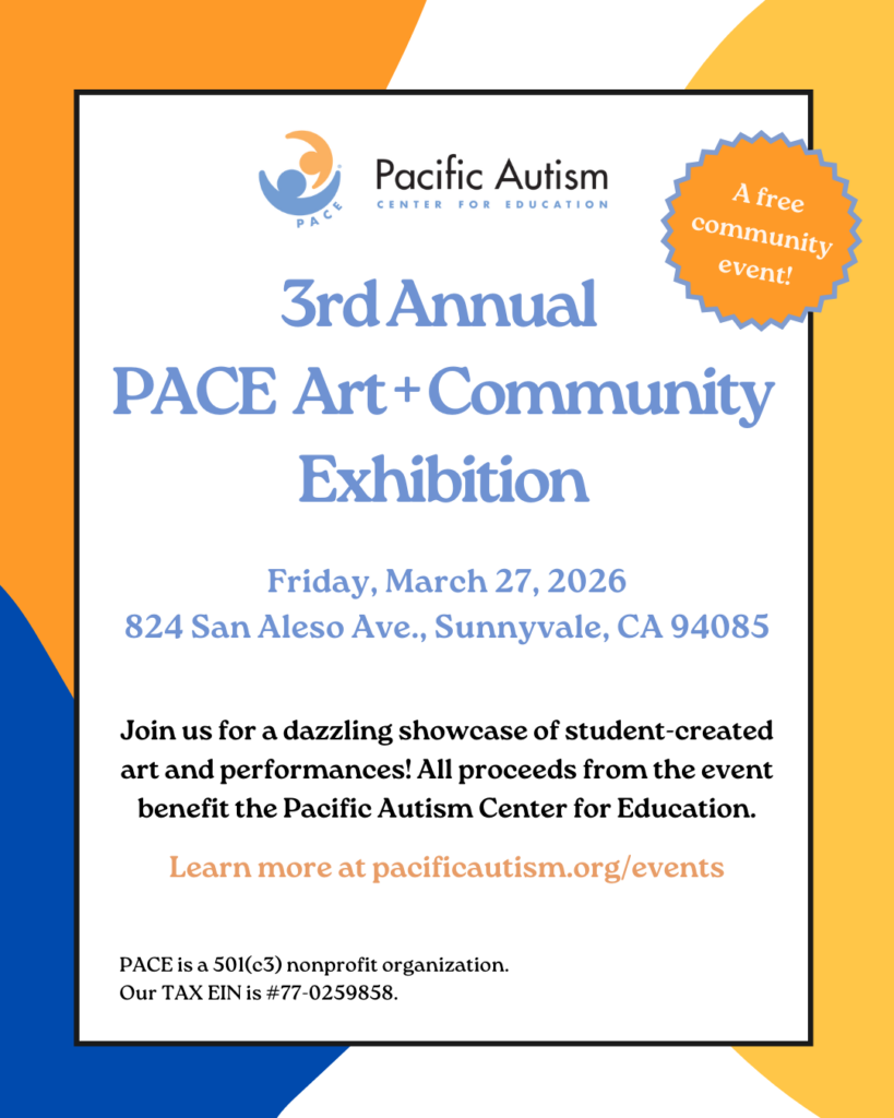 To kick off Autism Acceptance Month, the PACE School proudly presents the 3rd Annual PACE Art + Community Exhibition and fundraiser. Join us on Friday, March 27, 2026, 5:00 – 6:30 PM at our PACE San Aleso Campus located at 824 San Aleso Avenue, Sunnyvale, CA 94085. The event will feature: