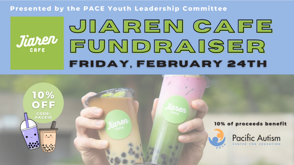 Save the Date! The PACE YLC will be holding a fundraiser at a local Santa Clara community partner, Jiaren Cafe, next Friday, February 24. Jiaren cafe will donate 10% of the proceeds from orders that day to Pacific Autism Center for Education.